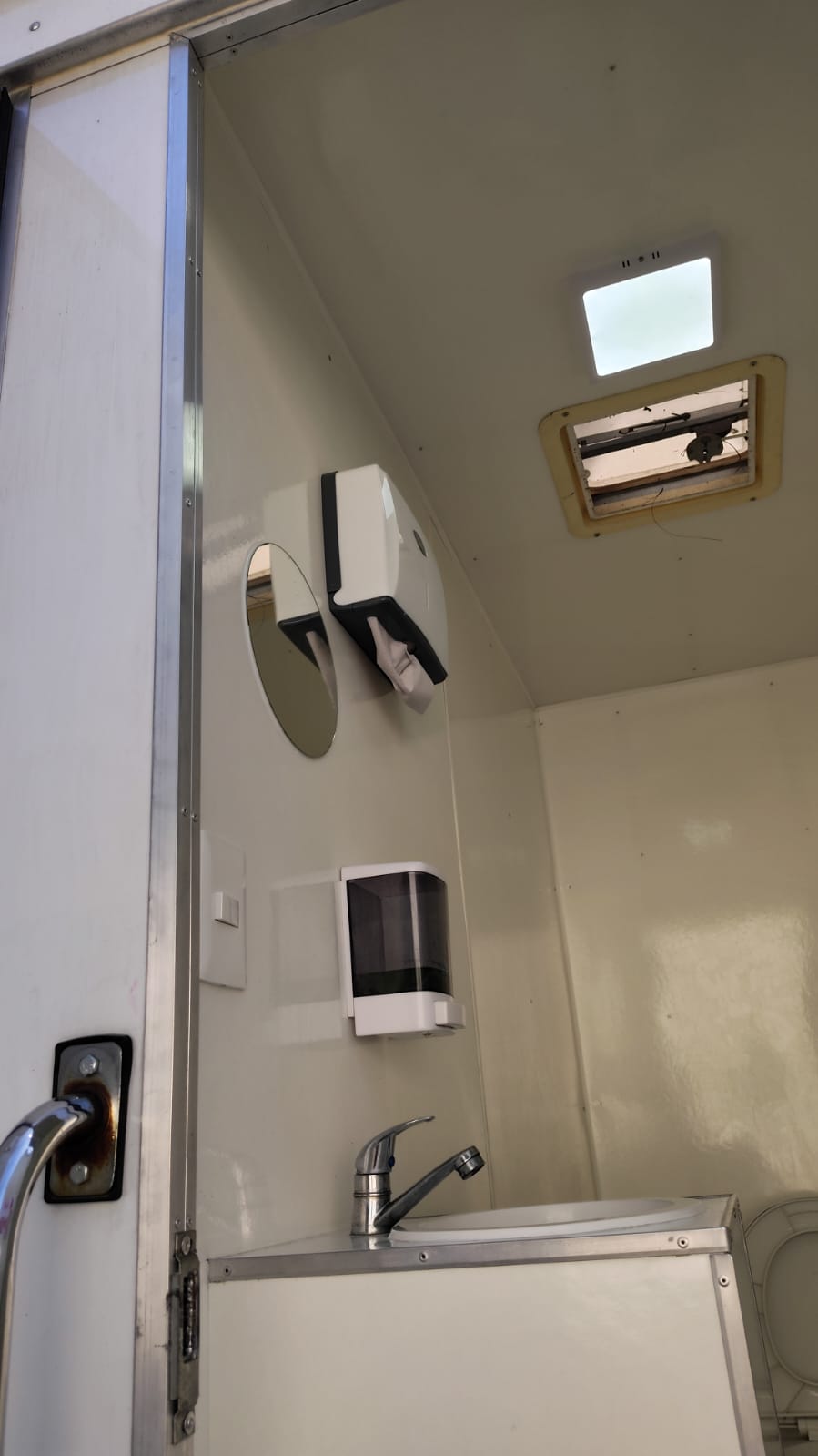 - W.C con tapa - Lavamanos - Surtidor de Sanitas - Jabón para manos - Papel Higiénico - Luz Interior - Espejo - Sistema Air Flush